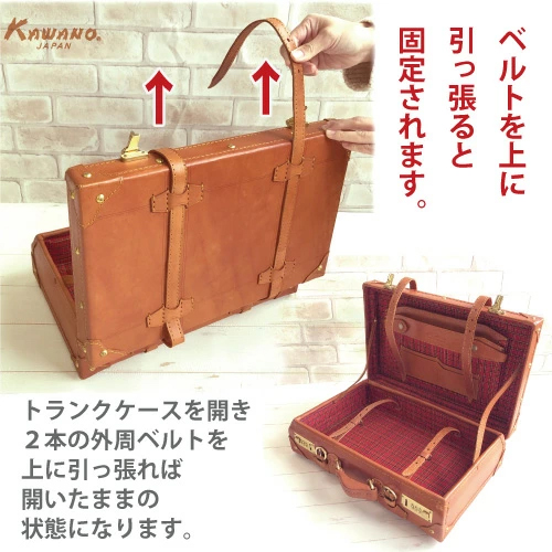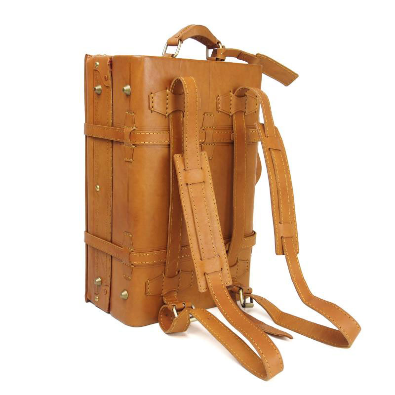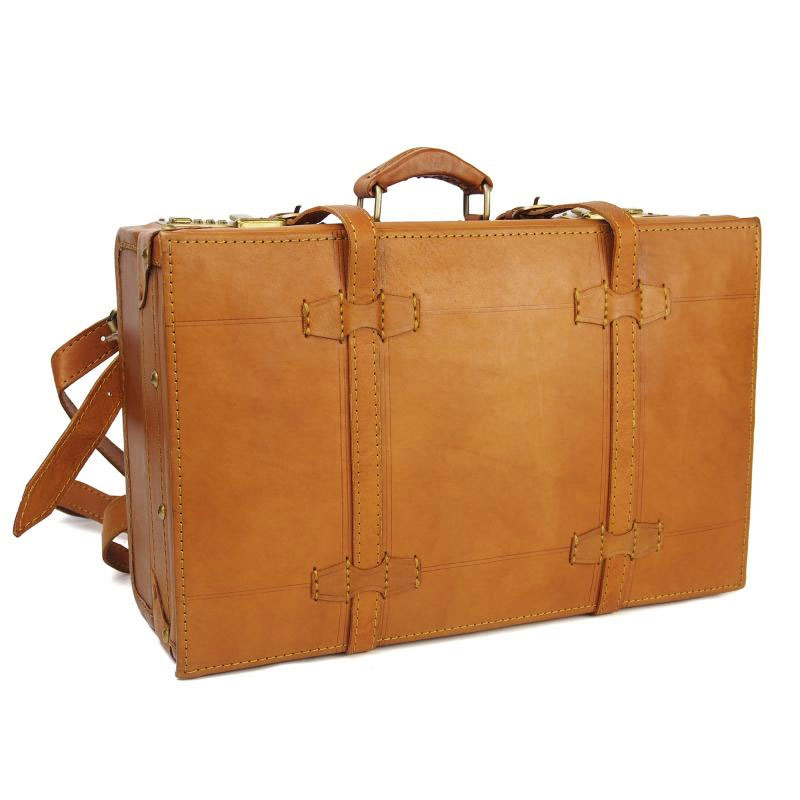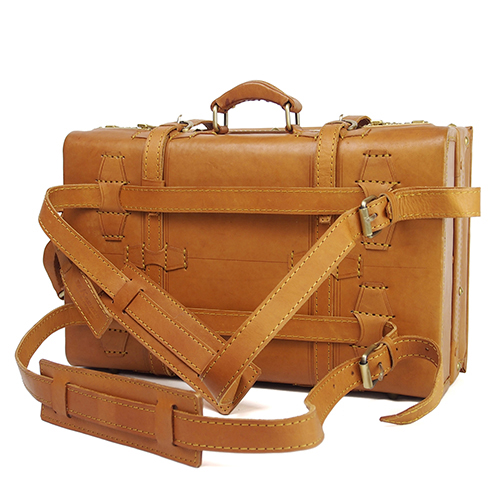 トランクケースには珍しく背負ってリュックにもなるショルダーベルトも付属しており、手持ちにもリュック型にもなる仕様で両方使えて便利な造り。使いやすく手造りの良さを感じながら、長く愛用して頂ける逸品です。