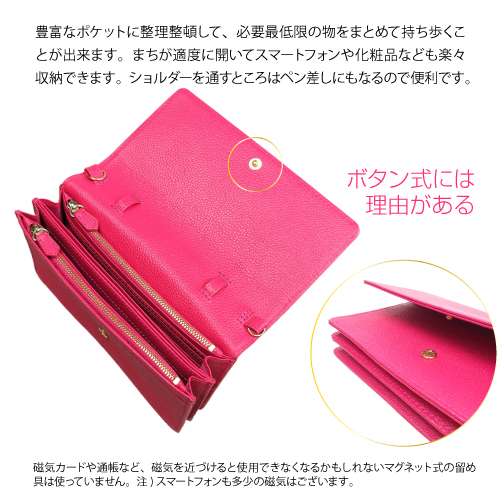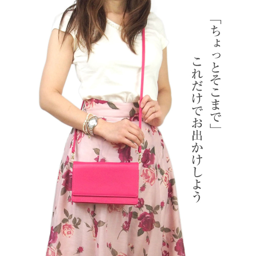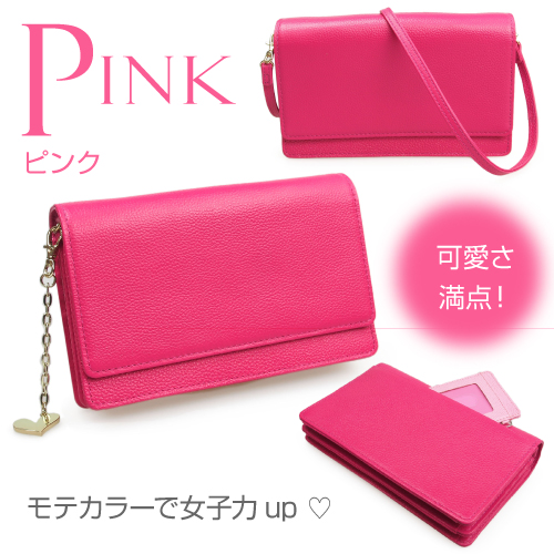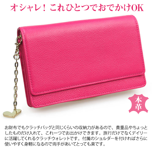 【送料無料】本革 牛革 クラッチウォレット お財布ポシェット 長財布 ミニバッグ ショルダー付属 ピンク