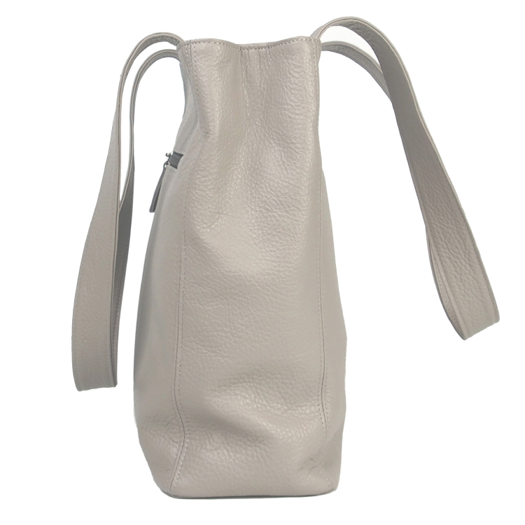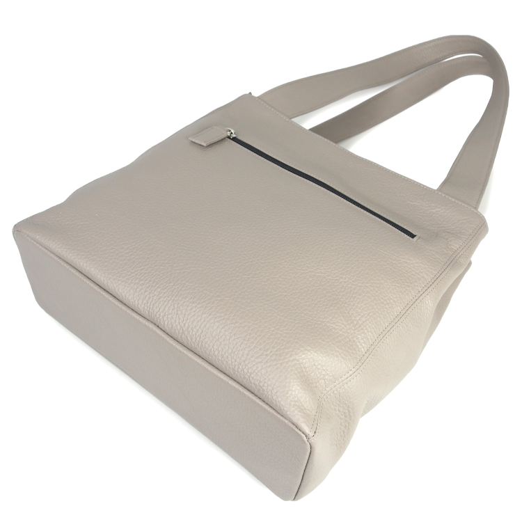 【送料無料】 縦型 トートバッグ イタリアンレザー シュリンクレザー 牛革 本革 ファスナー付き レディース No.28044 セメント