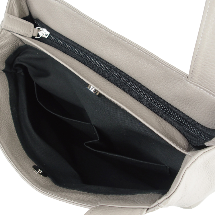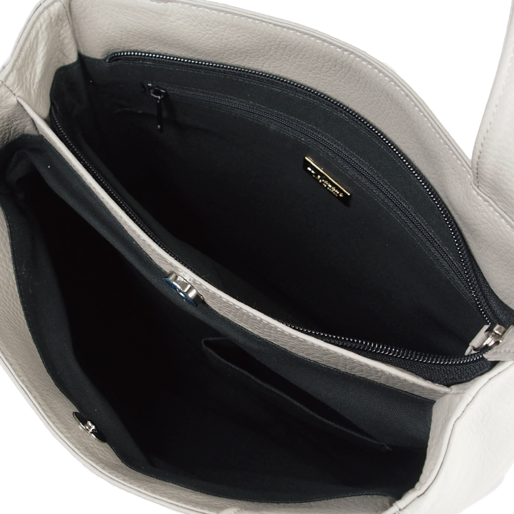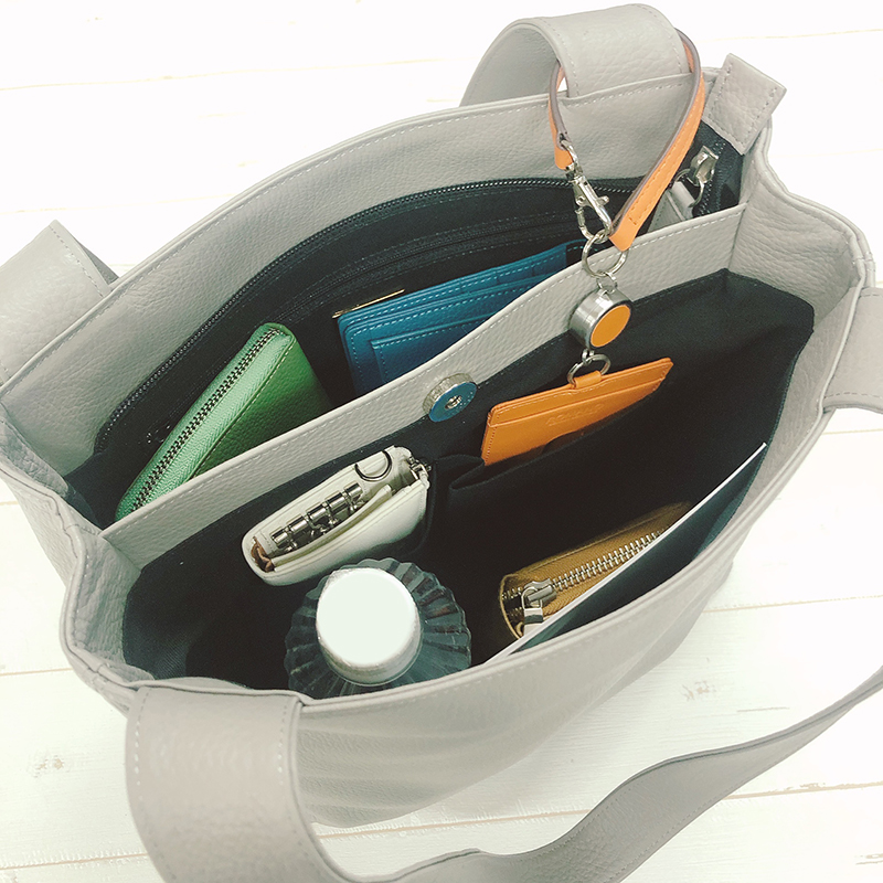 収納は2層式で整理がとっても楽メインの収納部分は2層式タイプ。一つはファスナーがしっかり上部についているので大事な物の収納に便利です。もう一つはマグネット式なので、すぐに取り出したい物を収納すると使い勝手がいいです。内側の布は明るい色味で入っている物が見つけやすいです。収納する持ち物によって仕分けできるので機能性も抜群です。整理して楽に物を収納できるバッグは、色々な物を持ち歩く女性の強い味方です。