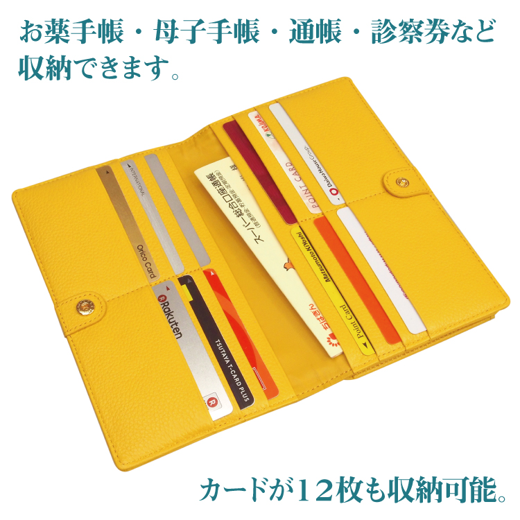 マルチポーチ 財布 お薬手帳 牛革 本革 カード収納 マルチケース パスポート 母子手帳 通帳 診察券 クレジットカード キャッシュカード 紙幣 ポイントカード 小銭入れ スマートフォン収納 多機能 オールインワン収納 ROMANO ロマノ 5306 イエロー ピンク ブルー グリーン ブラック