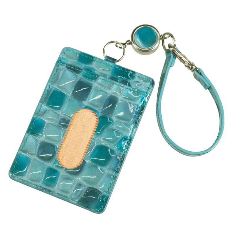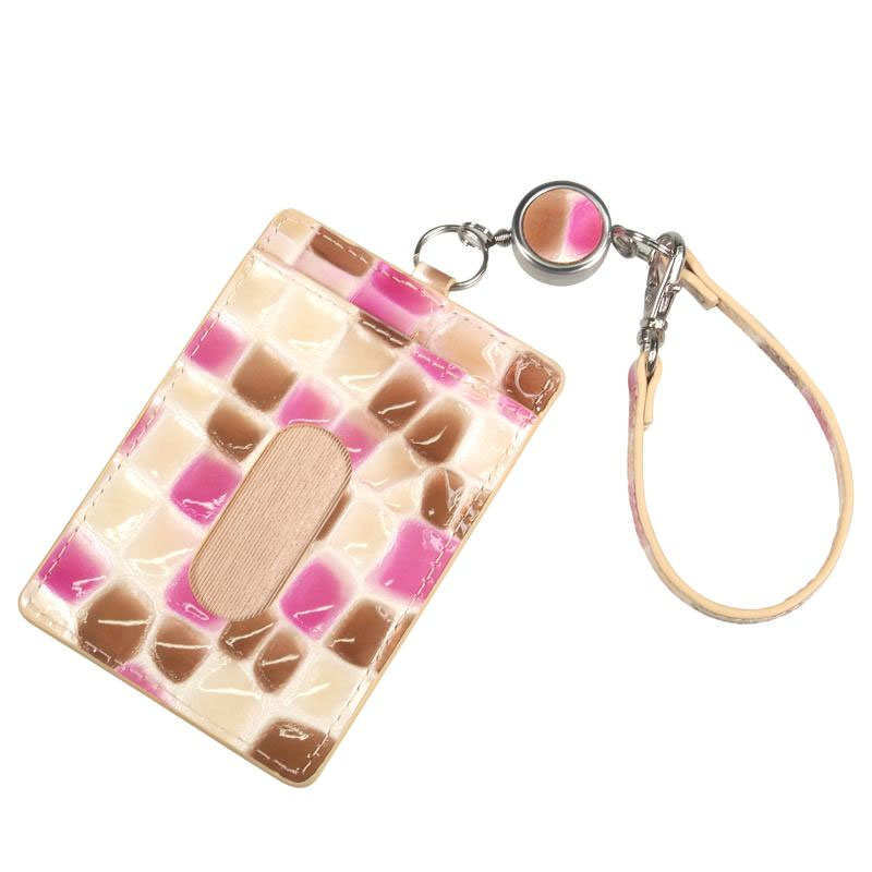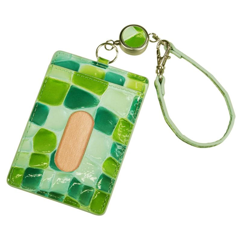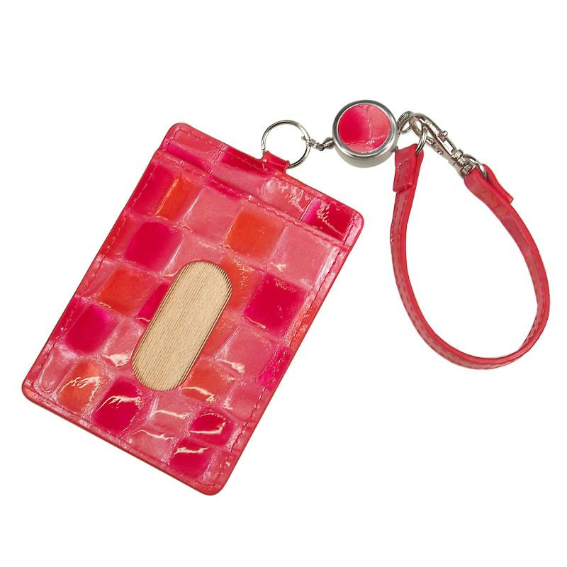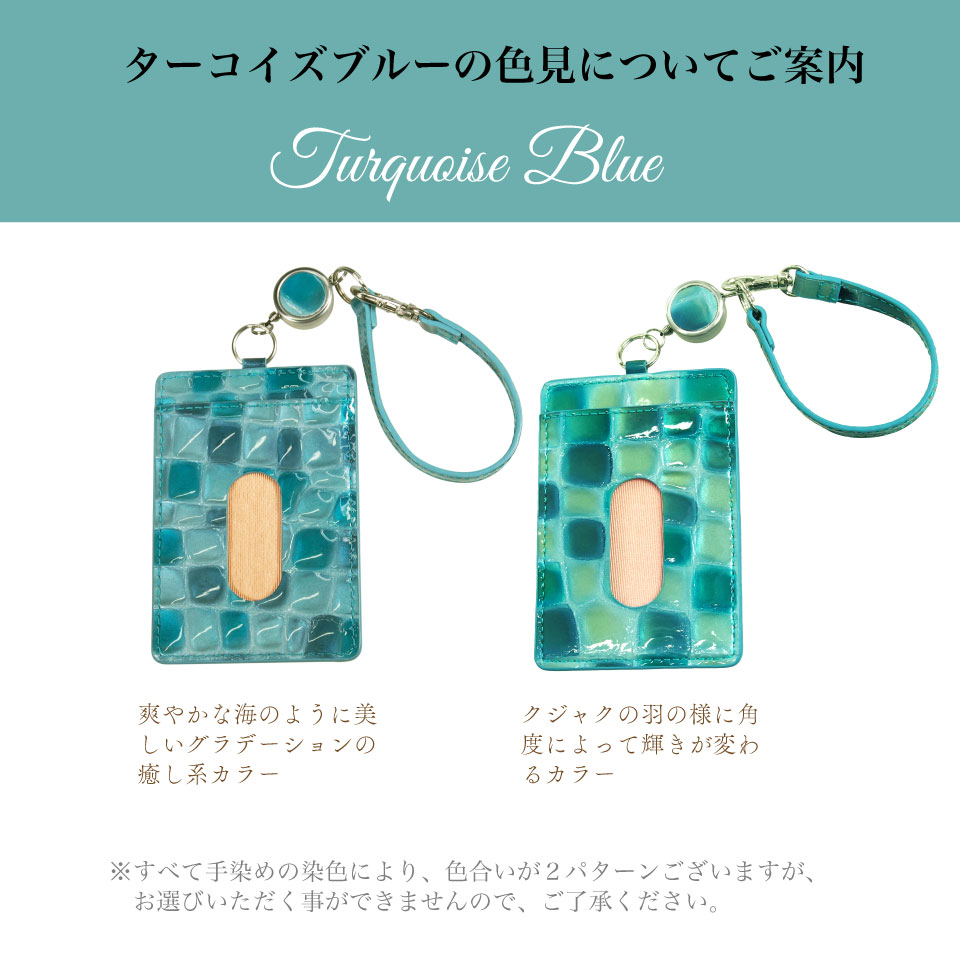 ★必ずもらえるキ-カバ-★【メール便送料無料】 パスケース リール付き メンズ レディース カードホルダー 定期入れ 本革 牛革 エナメル加工 クロコダイル調型押し ステンドグラス調 カワノバッグ STE-01