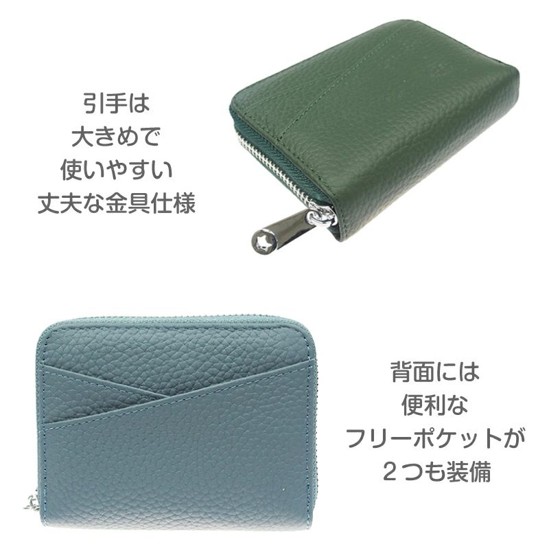 ラウンドファスナー式なので中身が飛び出さない安心仕様。ファスナ-引手部分も大きめで使い易い造りです。コンパクトかつ収納力&使い勝手抜群です。