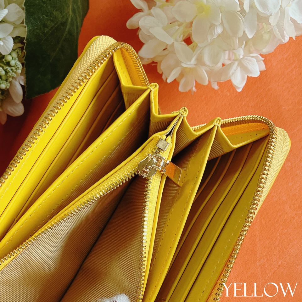 ラウンドファスナーはゴールドの引手でスムーズに開き、財布のマチがしっかりと扇状に大きく広がります。収納力にも優れ用途に合わせた使い分けができます。