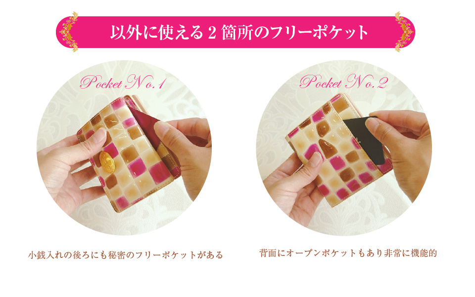 カードの収納部は意外にたくさんあり、ちょっとめくるだけで別収納が現れます。カードが10枚も入ってとっても便利です。