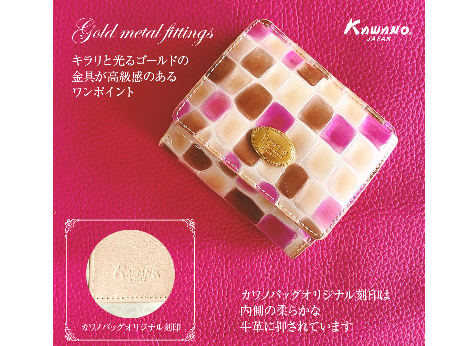 ベネチアをイメージしたキラキラとパール調に輝く、ステンドグラスのようなレザーを使用したお財布です。