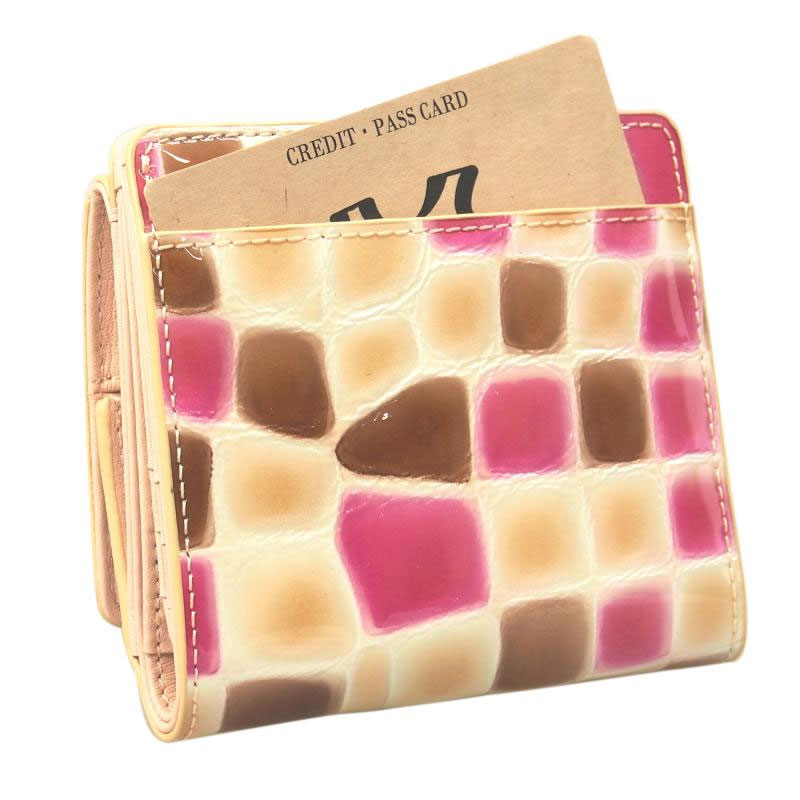 ★必ずもらえるキ-カバ-★ステンド調 エナメル 二つ折り財布 牛革 本革 BOX型小銭入れ ミニ財布 ショートウォレット 軽量 STE-02