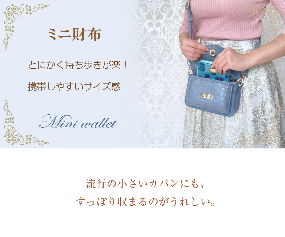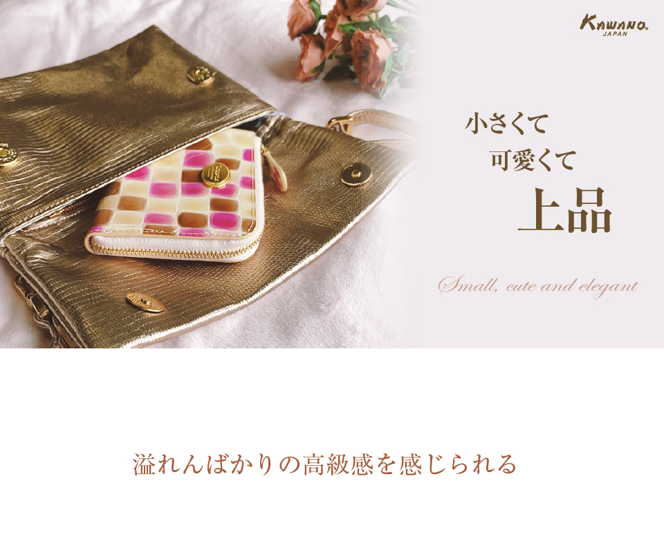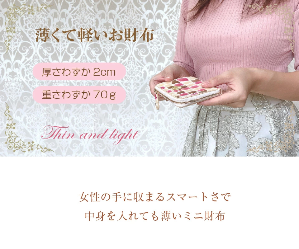 クラッチバッグなどの小さめのバッグにも収納でき、ちょっとしたお買い物やコンビニ等でのキャッシュレス決済にも便利です。L字ファスナーなので中央のコインポケットの小銭も飛び出さず安心仕様です。