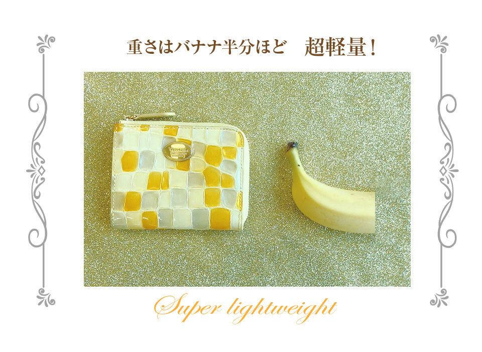 質の良い日本製エナメル本革の仕様で、見た目よりも札束やカードも入ります。わずか70gの軽さで、とても軽くて持ち歩きやすいです。