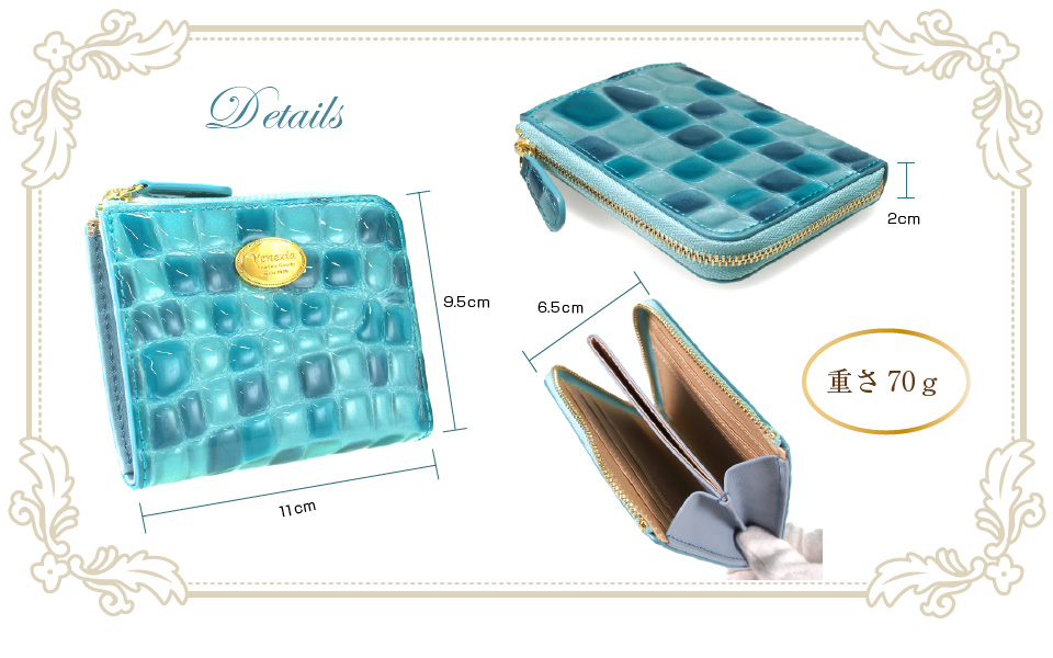 ベネチアをイメージしたキラキラとパール調に輝く、ステンドグラスのようなレザーを使用したお財布です。