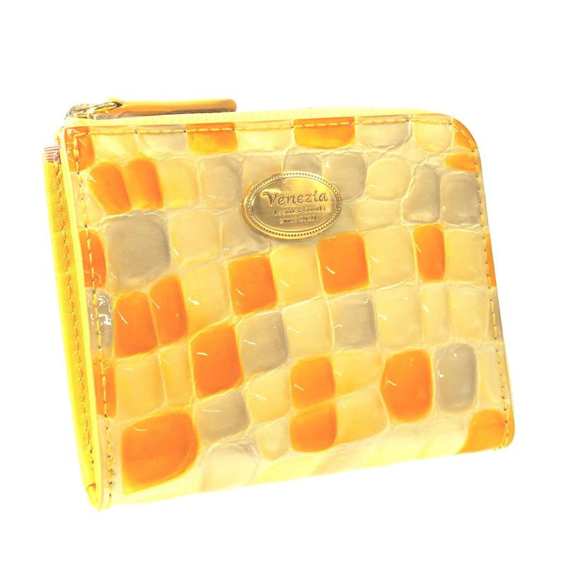 ★必ずもらえるキ-カバ-★ステンド調 エナメル L字ファスナー財布 牛革 本革 コインケース 小銭入れ ミニ財布 ショートウォレット 軽量 STE-03