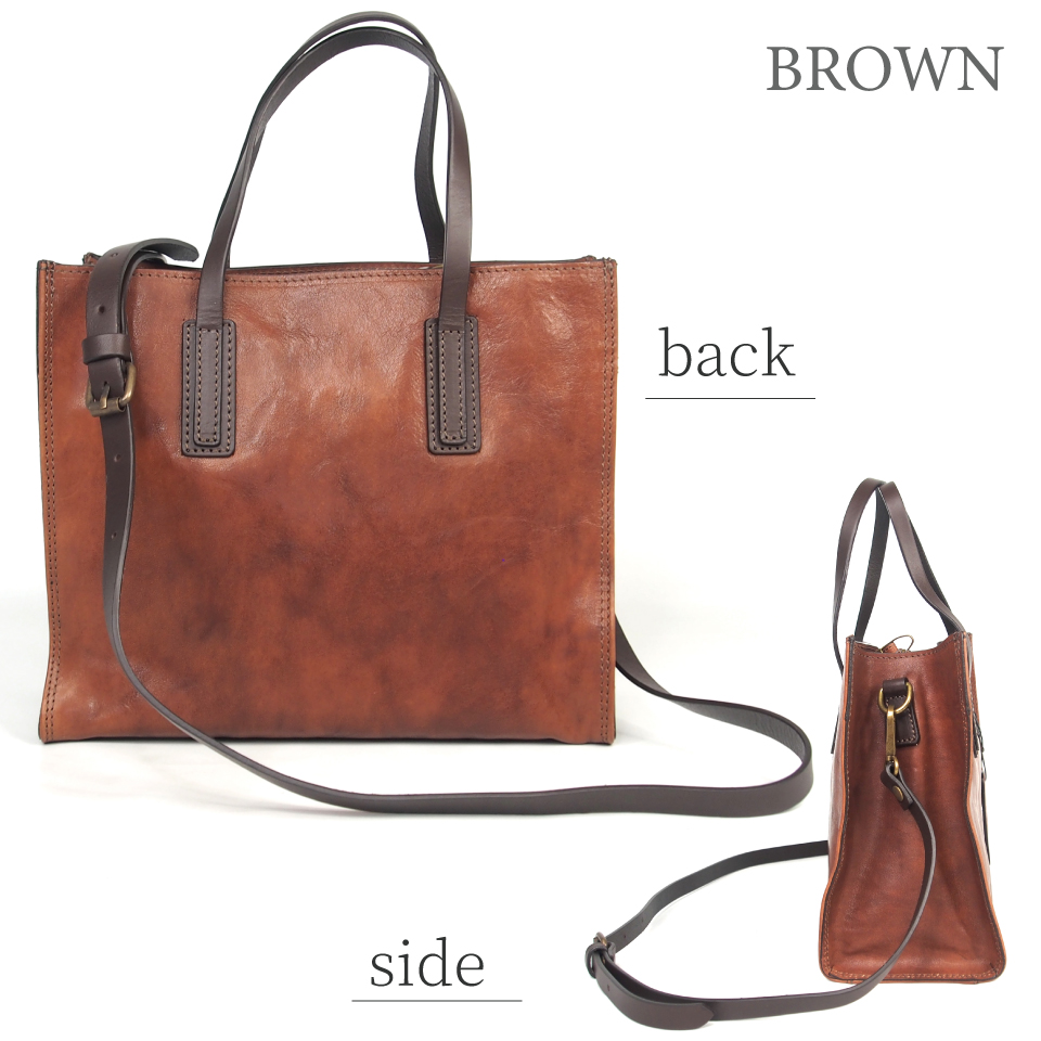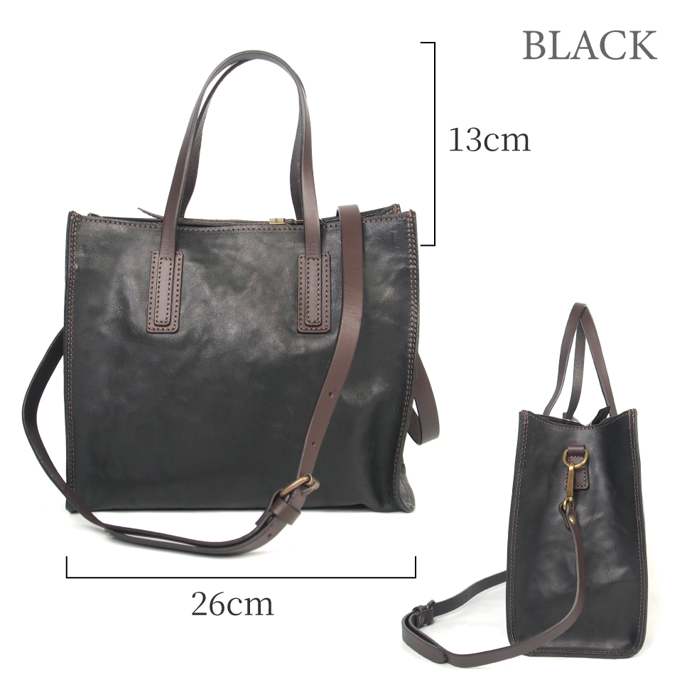 ワイルドな独特の革の風合いを存分に活かしながらデザイン的には繊細でスタイリッシュなスクエア型なので、街でのショッピングや旅行にも幅広いシーンで活躍しレディース、メンズ問わずお使いいただけます。ナチュラルな色合いのブラウンとシックなブラックの2色展開です。