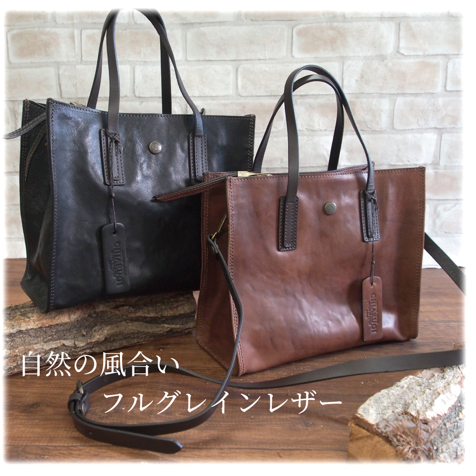 フルグレインレザーの魅力あふれる天マチファスナーのミニ2wayショルダーバッグ Art.53602