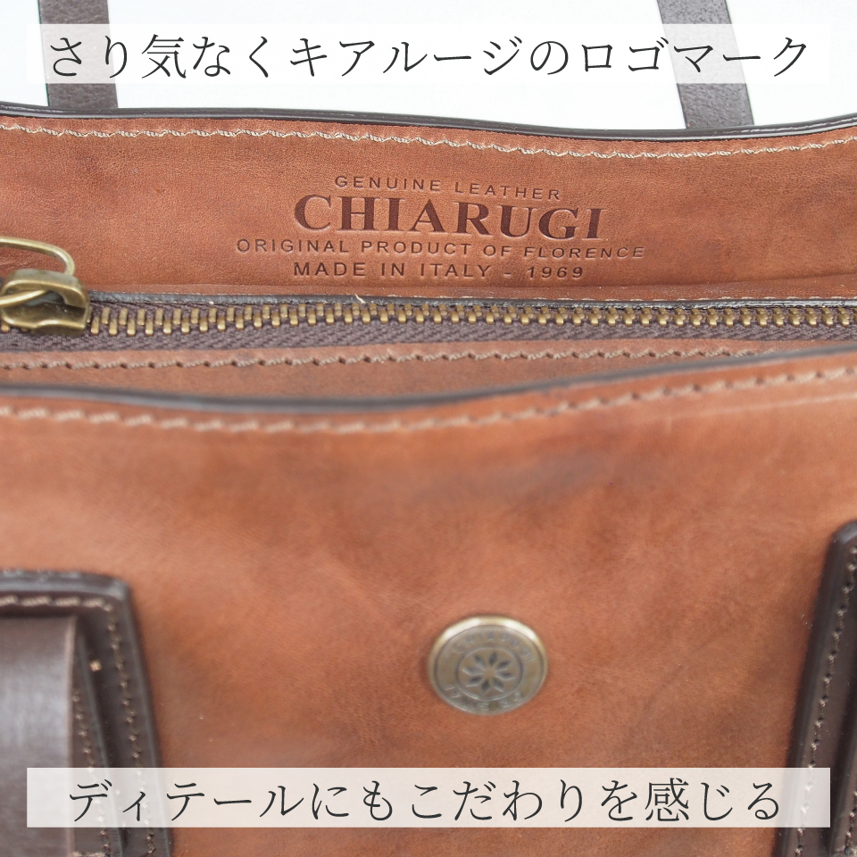 イタリア・フィレンツェの伝統的な革工房「CHIARUGI キアルージ」。1969年に名高いレザー工芸におけるクラフトマンシップの追求を目的に創立。クオリティとエレガントさの追求は、創設者レモ・キルアージから、その息子エミリアーノに受け継がれています。 40 年以上にわたる素材を最高の状態に仕上げるノウハウを活かして、最高品質の原材料のみを厳選してつくられるキアルージコレクションは、イタリア中のブティック、海外のトップレザー取り扱い店や高級百貨店で展開されています。