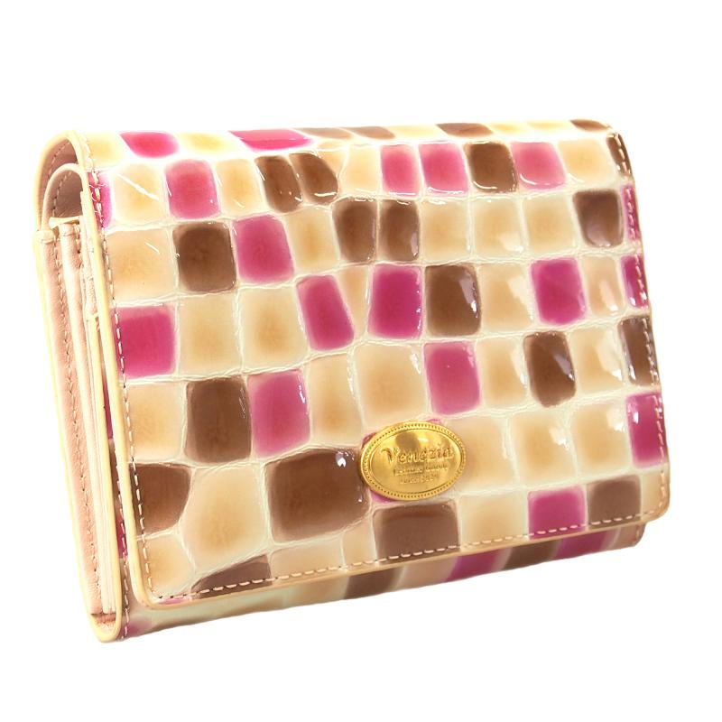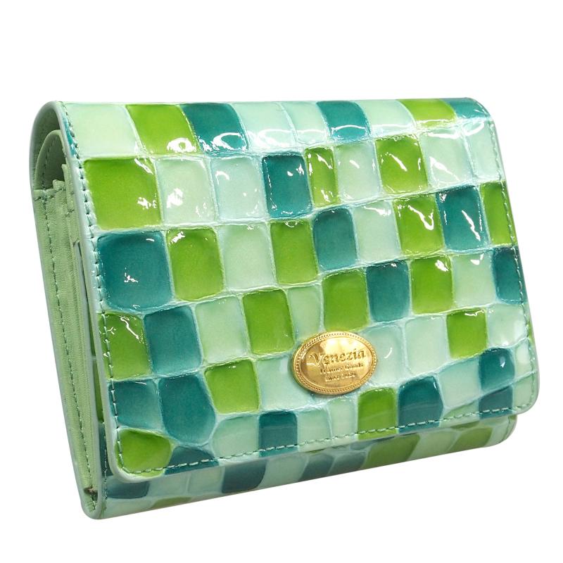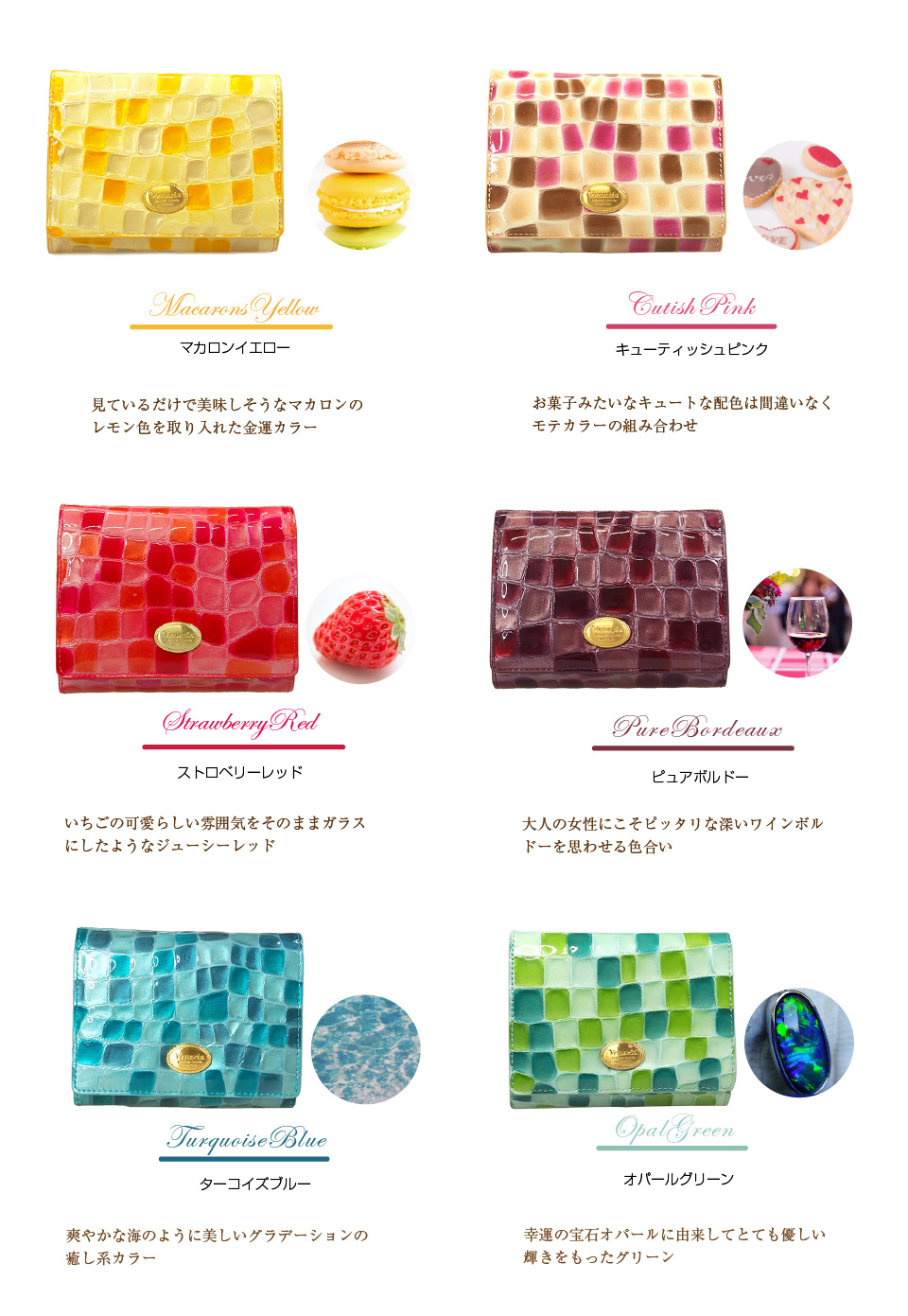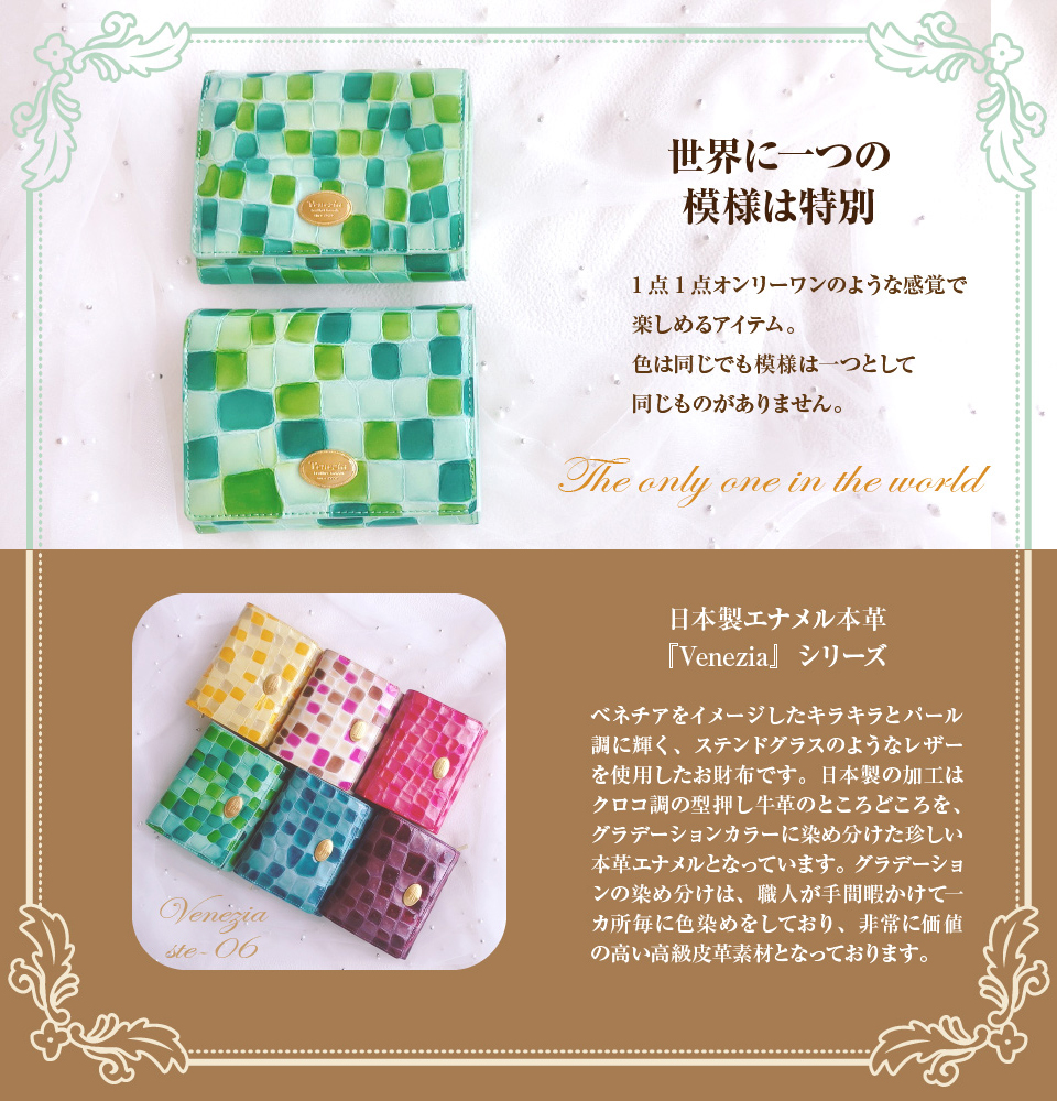 ベネチアをイメージしたキラキラとパール調に輝く、ステンドグラスのようなレザーを使用したお財布です。