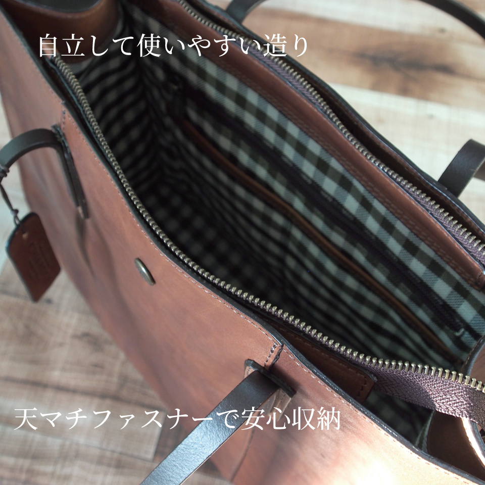 フルグレインレザーの魅力あふれる革好きのための天マチファスナーのA4サイズ対応トートバッグ Art.53603