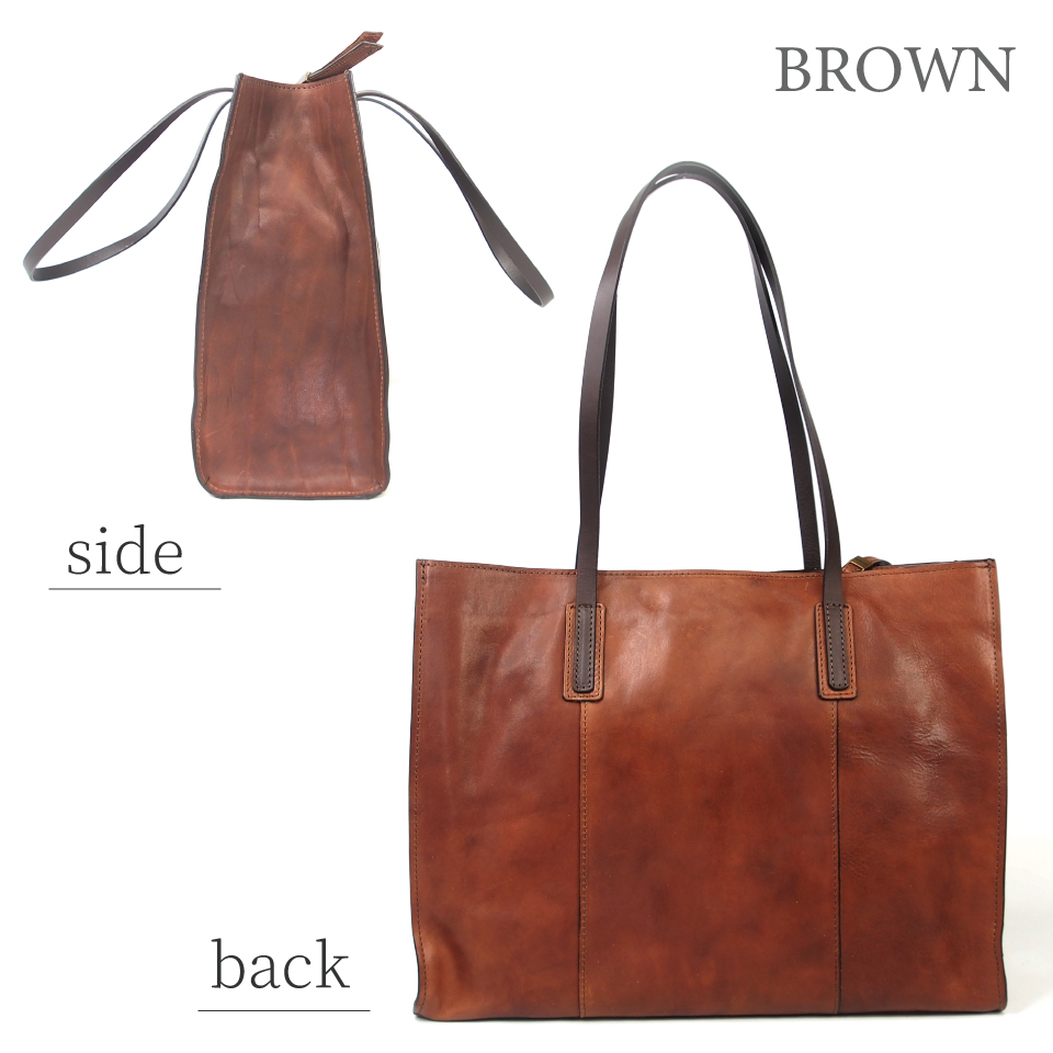 ワイルドな独特の革の風合いを存分に活かしながらデザイン的には繊細でスタイリッシュな自立型のトートバッグ。街でのショッピング、普段使いからビジネスバッグとしても幅広いシーンで活躍しレディース、メンズ問わずお使いいただけます。ナチュラルな色合いのブラウンとシックなブラックの2色展開です。