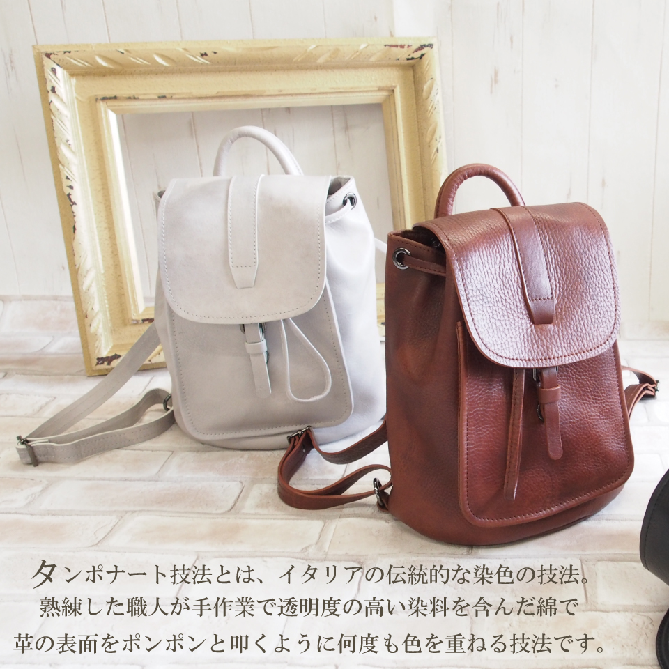 イタリア製 牛革 リュック ミニリュック バックパック 小さめリュック レザーバッグ 軽量 シンプル シュリンクレザー タンポナート カーフスキン お洒落 ブランド BRUNO ROSSI/ブルーノロッシ R320