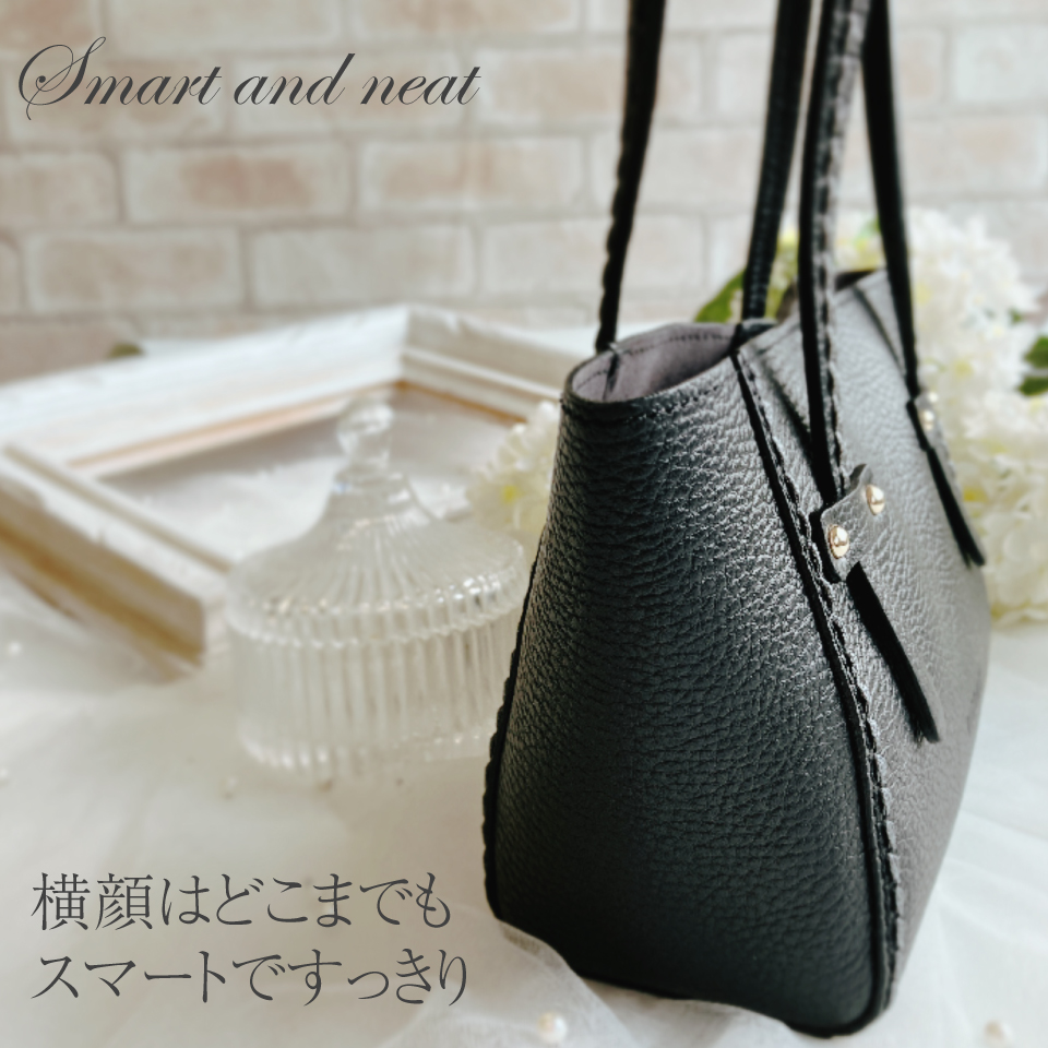 シンプルな中に牛革の柔らかく美しいカーブと、プリニオヴィソナの特徴的なステッチが上品に収まり、絶妙なバランスの形です。また、イタリアならではの上品な造りは、どの角度からみても魅力的で、持っているだけで自慢したくなるようなバッグです。