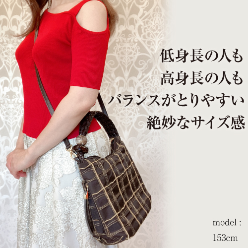 軽やかなデザインなので、どんな身長の方や、年齢の方にも合わせて頂きやすいバッグです。
