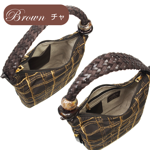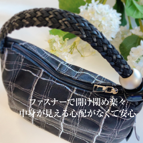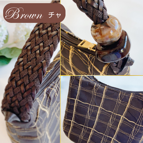 他のバッグにはない個性的な形で魅力的なバッグです。さらに、編み込まれたハンドルのデザインとストーンのアクセントが女性的で、持っている人を上品に見せてくれます。