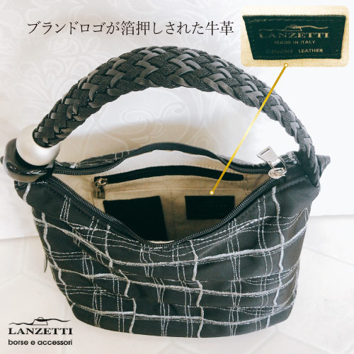 イタリア製 MADE IN ITALY ナイロン シルバーライン ゴールドライン 軽量 2WAYハンドバッグ ストーン付き ショルダー付き LANZETTI ランゼッティ Art.3490