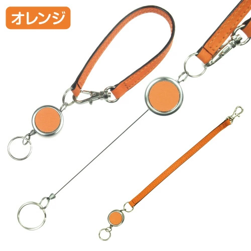 牛革を使用したリール付きのストラップです。毎日使うものには、劣化しにくい丈夫な本革がおすすめです。