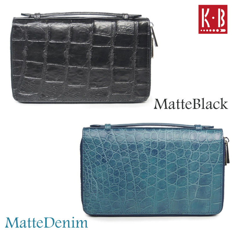 クロコダイル ワニ メンズ オーガナイザーバッグ マット加工 クラッチバッグ セカンドバッグ KB カワノバッグ ベトナム製 長財布 手持ち型 ダブルファスナー マットデニム マットブラック