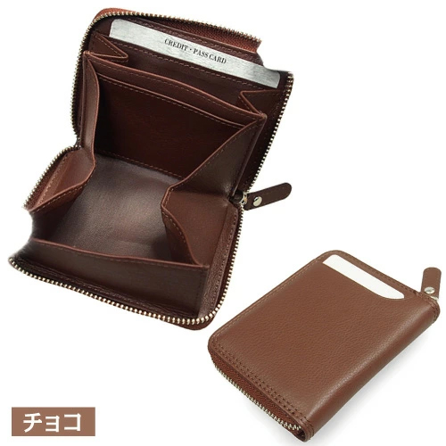 大きく開き小銭が見やすく取り出しやすいBOX型コインケース。手のひらサイズでコンパクトながらお札もカードも入る抜群の機能性と収納力です。ラウンドジップなので中身が飛び出る心配もなく安心です。