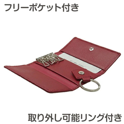 シンプルなデザインで使いやすく、コンパクトで持ちやすいサイズの牛革のキーケースです。取外し可能のリングやポケットなど多機能で便利な造りです。