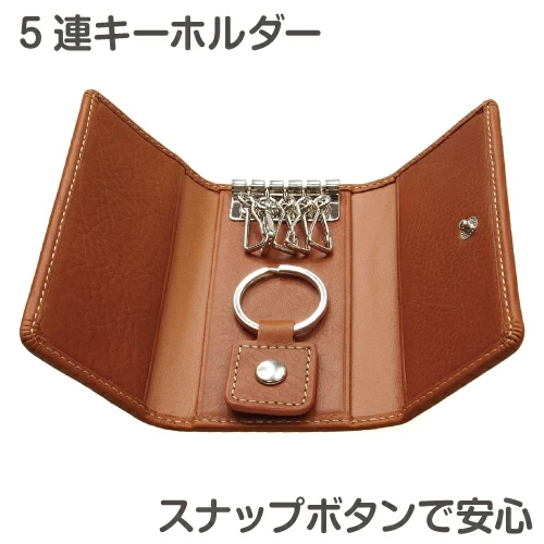 取外し可能のリング以外にも、5連キーリングがあります。家や車の鍵以外にも、会社やロッカーの鍵など、鍵を多く持っている人には便利なキーケースです。スナップフック式なので取り外しも簡単です。