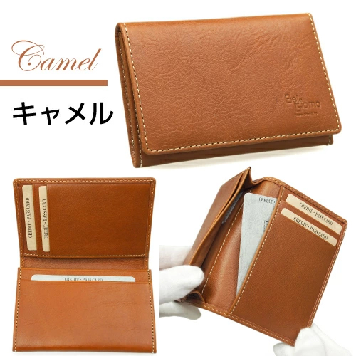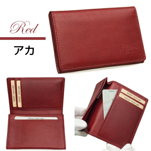 【メール便送料無料】 軽量 牛革 本革 名刺入れ カードケース 二つ折り ササマチタイプ 縦型ポケット付き BelGiorno(ベルジョルノ) 8283 キャメル アカ クロ ネイビー グリーン