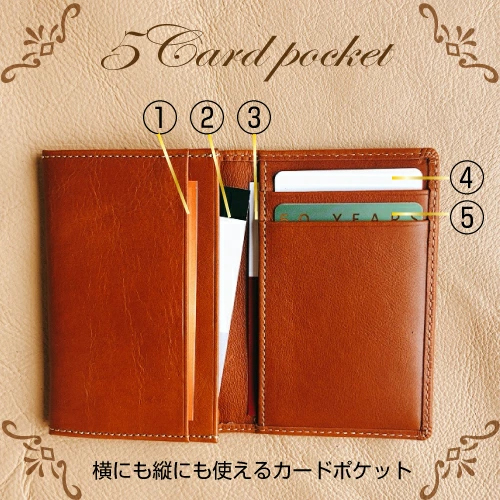 カードポケットが同じ方向だけでなく縦にも横にも入れられるデザインです。