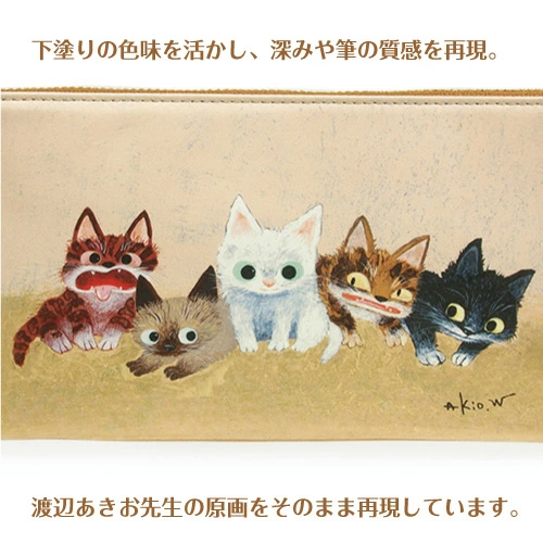 猫ちゃん好きの方へのプレゼントに最適です。専用の箱も付いています。また渡辺あきお先生のイラスト箔押しをした牛革製のチャームが付いています。