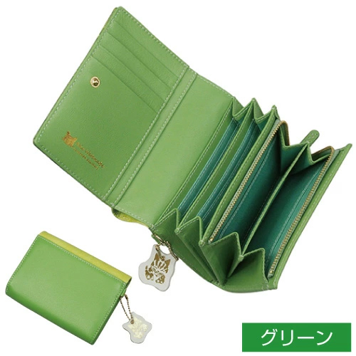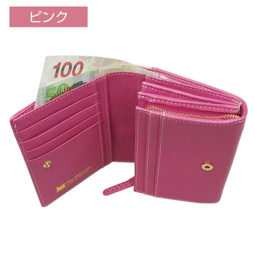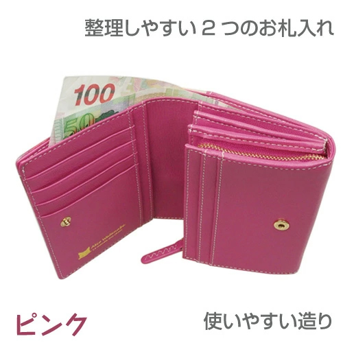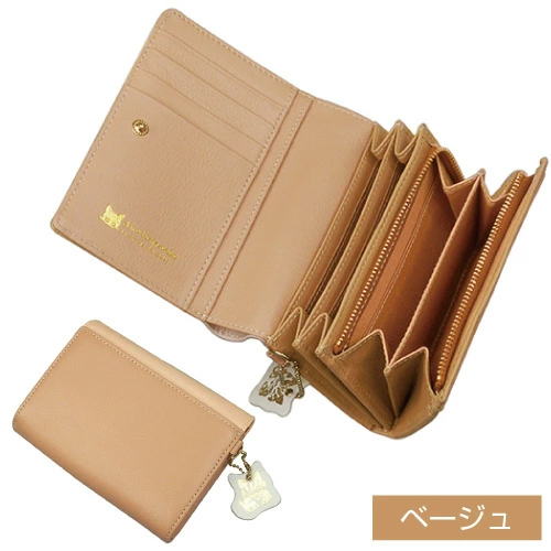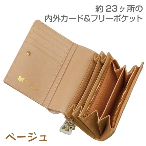 二つ折り財布ながら少し大きめで、L字ファスナー式の小銭入れもあり、またカードやレシートも入れられるカードポケットが約20ヶ所もあり 収納力抜群な造りです。カラーもあるのでどんなシーンにも合わせやすくご愛用いただけます。猫ちゃん好きの方へのプレゼントにもおすすめです。