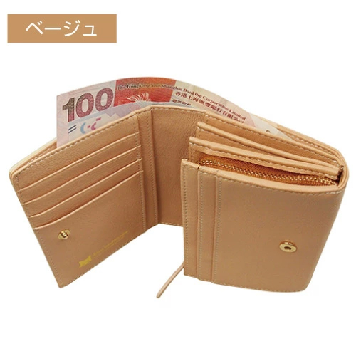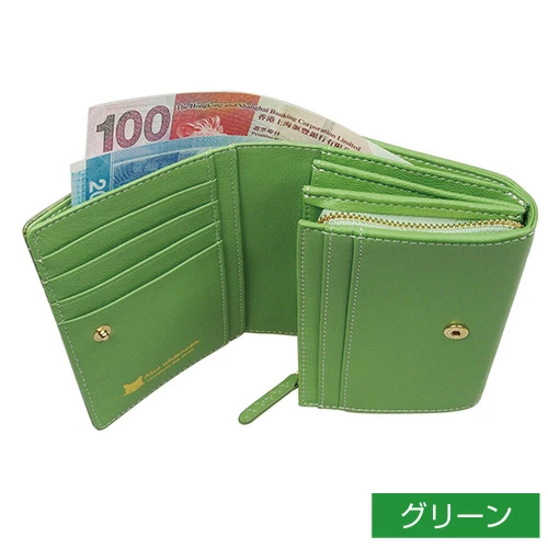 カードをたくさんもっている主婦やOLさんにもぴったりの豊富な収納機能です。 お財布にボリュームが出たときもスナップボタンで留めて頂くことで安心して収納出来ます。