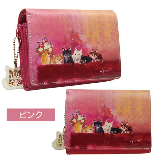 札束やカードも沢山入る二つ折りL字ファスナー式小銭入れ付き財布です。日常で色んな表情で遊ぶ子猫たちに癒されてください。