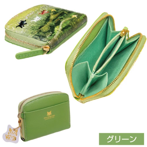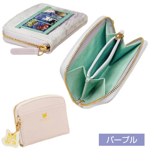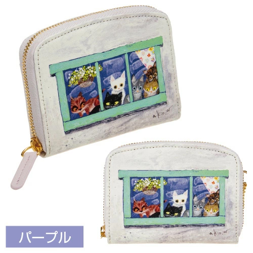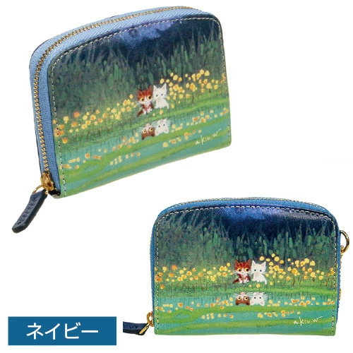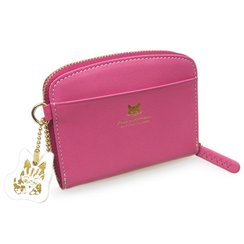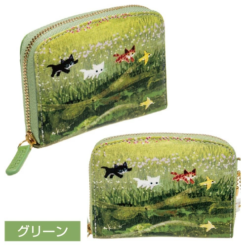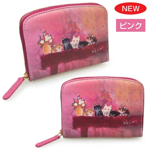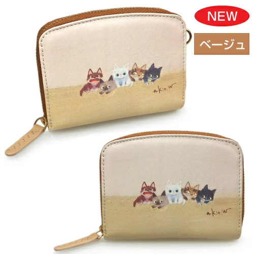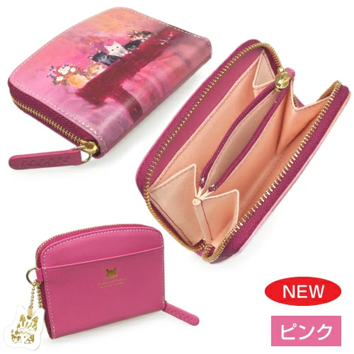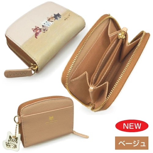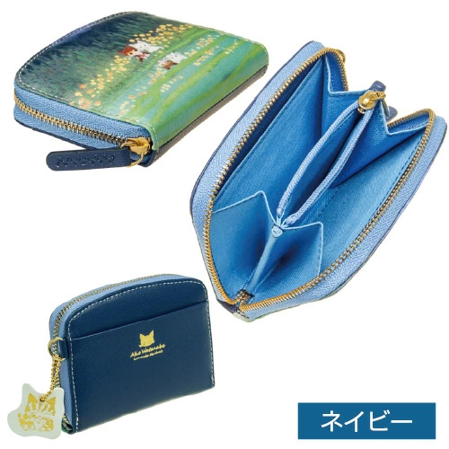★必ずもらえる牛革チャーム★小銭入れ ラウンドファスナー 本革 牛革 猫チャーム付き 渡辺あきお 猫イラスト WA-007
