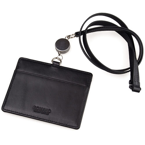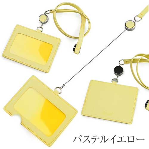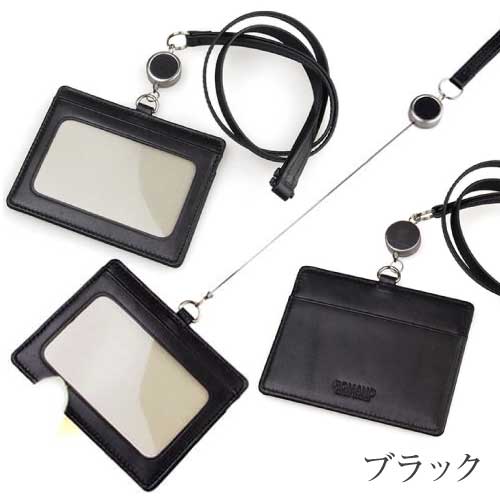 【メール便送料無料】パスケース IDカードホルダー 牛革 本革 リール付き ネックストラップ 社員証ケース 安全着脱パーツ付き 薄型 スリム社員証 安心 防犯 カードホルダー ROMANO (ロマノ) ID-2 ブラック パステルブルー レタスグリーン パステルイエロー オフホワイト