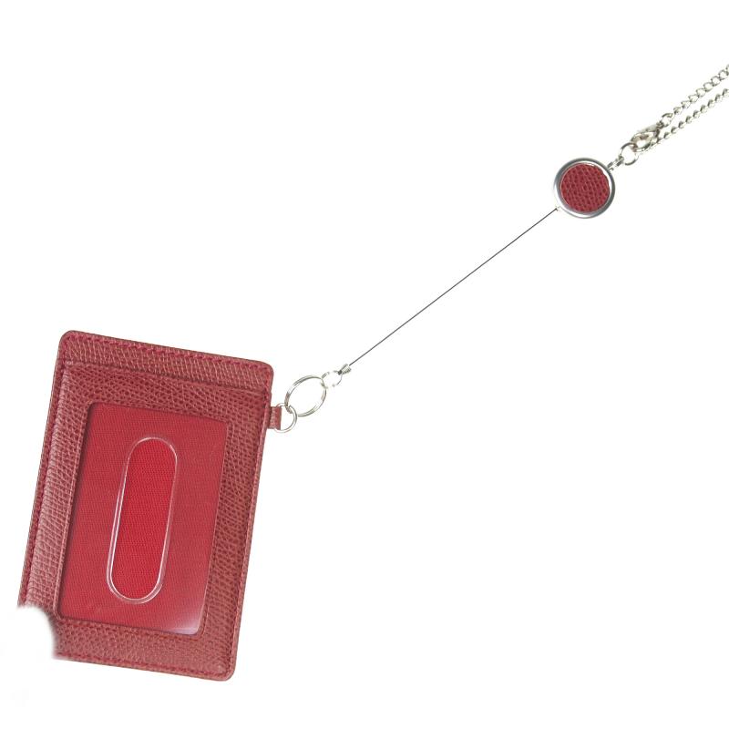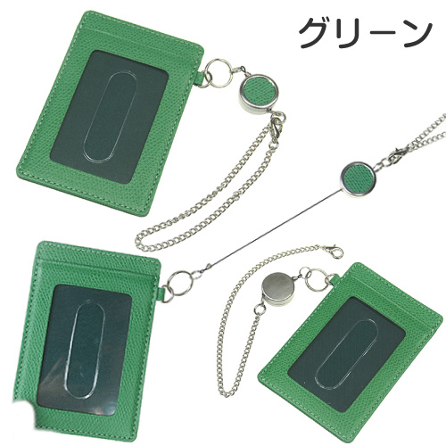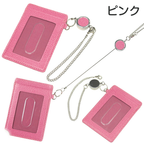 【メール便送料無料】パスケース 定期入れ 牛革 型押し 両面 クリアポケット リール付き 3502 キイロ ピンク グリーン ブルー チャ ワイン クロ