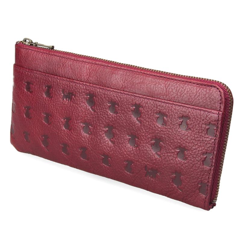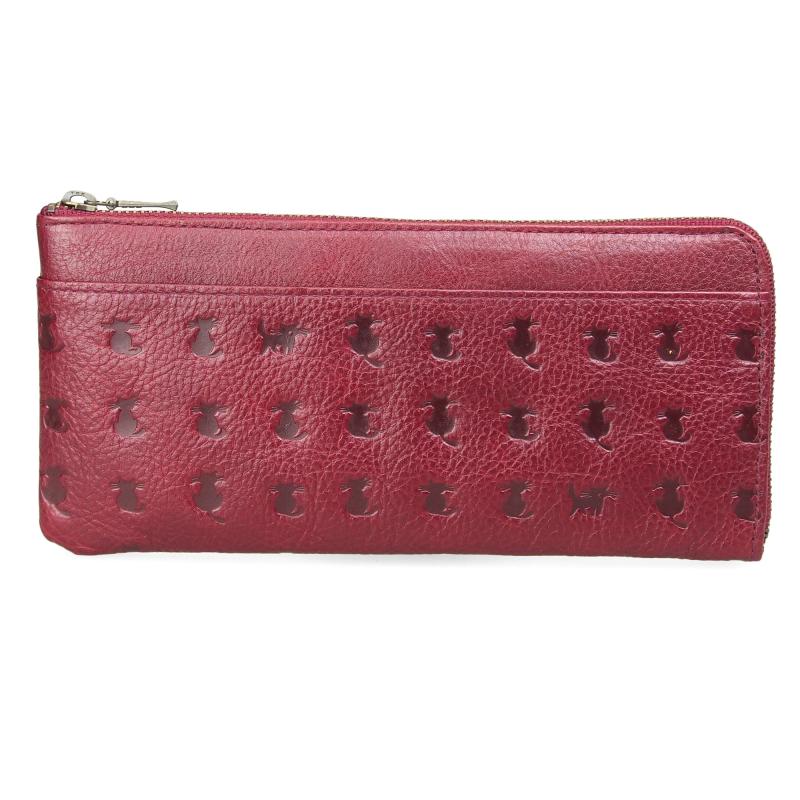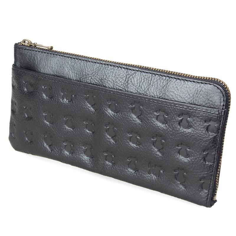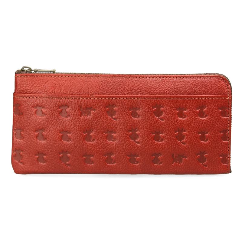 猫のシルエットが正面に型押しされた、なんとも可愛いらしいお財布です。よく見ると猫たちはそれぞれ違うシルエットをしていて、今にも動き出しそう。そんな猫の模様を見ているだけでも癒され、愛着が湧いてきます。
