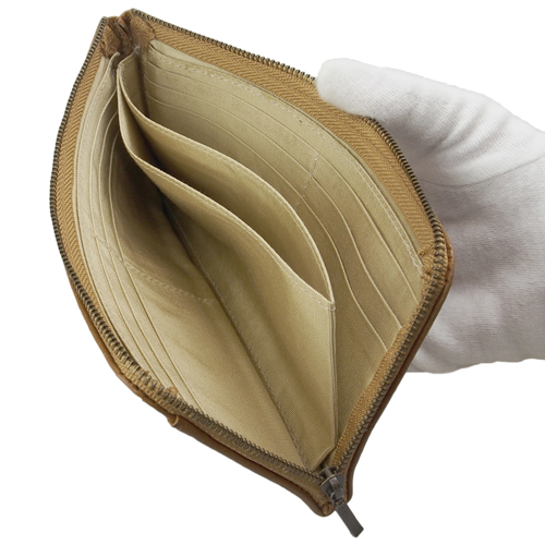 小銭入れ内部中心には小銭入れがあります。フタがないので中がよく見え、小銭を取り出しやすくできています。ファスナーを閉じるとお財布を逆さにしても、小銭が飛び出すことはありません。