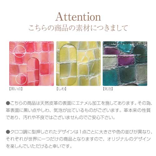 | 素材 | クロコ調型押しエナメル加工牛革 |