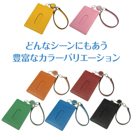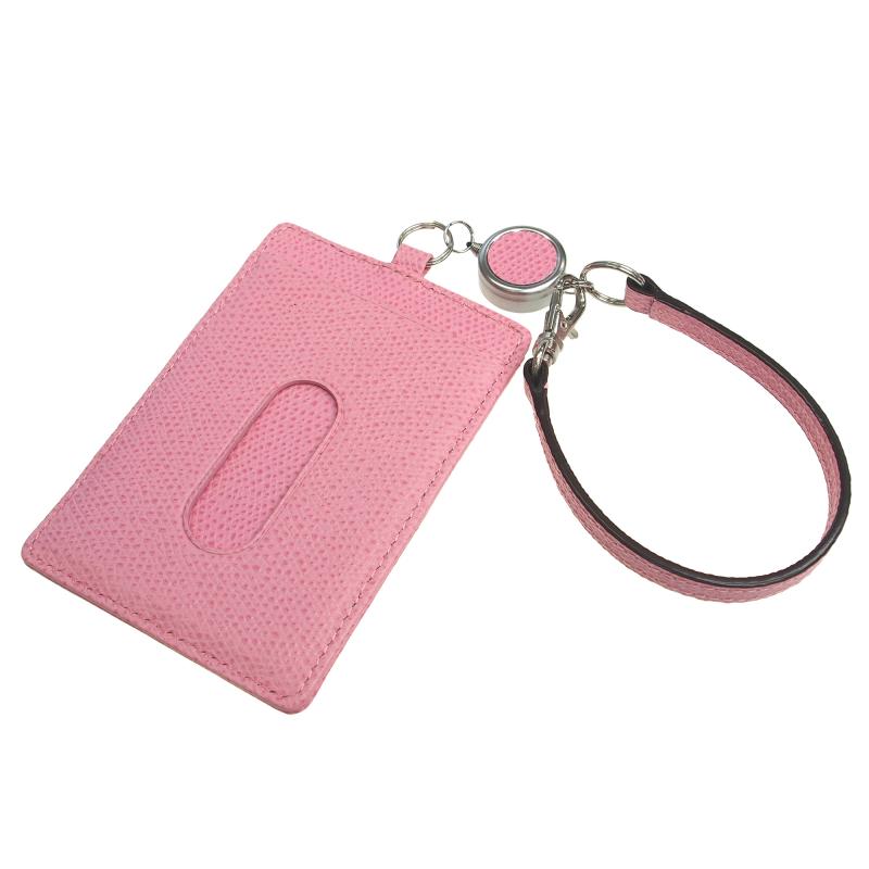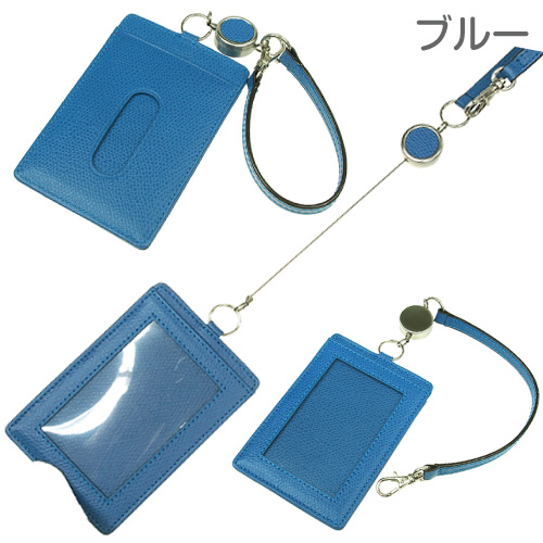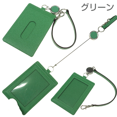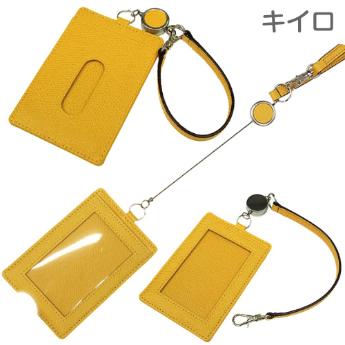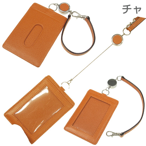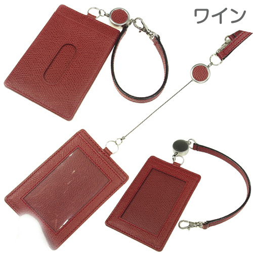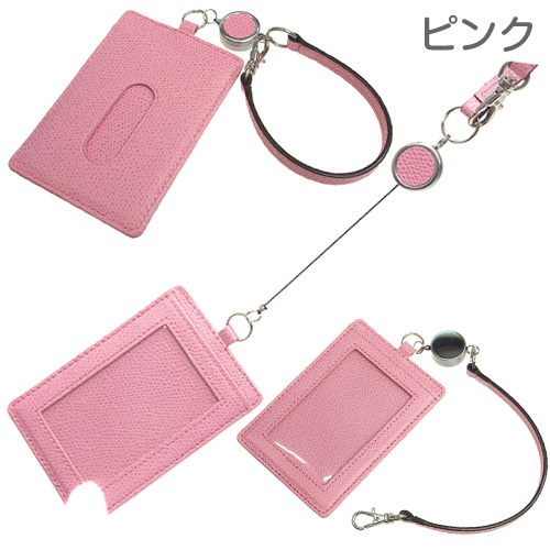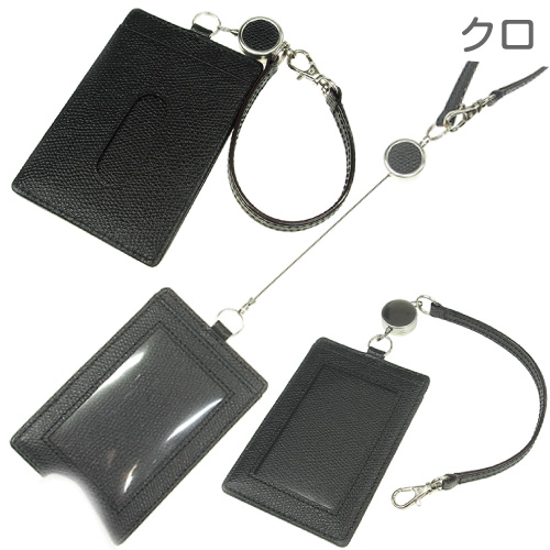 【メール便送料無料】両面仕様 パスケース 定期入れ 牛革 本革 メンズ レディース 型押し 両面 クリアポケット 革ストラップ リール付き 360