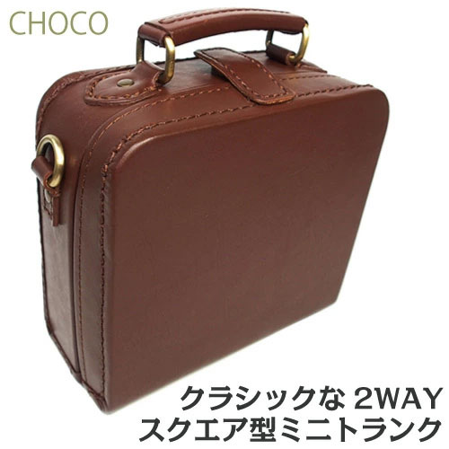 シンプルでクラシックなスクエアトランク型2WAYショルダーバッグ