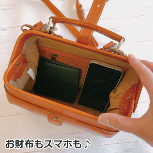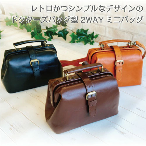 大きく開く口枠のがま口が可愛らしいドクターズバッグ。レトロかつクラシックでシンプルなデザインのドクターズバッグ型2WAYミニバッグです。