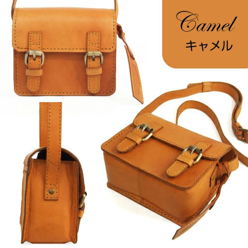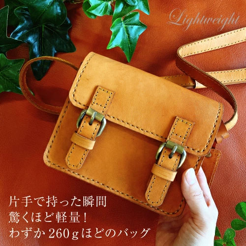 可愛らしい小さめサイズなので、ちょっとしたお出かけや、ファッションのワンポイントとして最適なヌメ革の手造りバッグです。アンティーク調のゴールド金具が、天然牛革が醸しだすレトロな雰囲気と絶妙なマッチングです。飽きのこないシンプルでクラシカルなデザインは持つだけで雰囲気が出るショルダーバッグです。天然素材ならではの上質な経年変化を感じながら長くお使い頂けます。