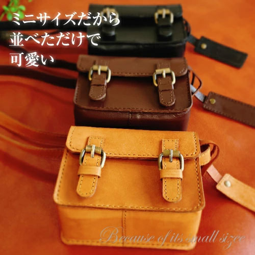 レトロな風合いのキュートなミニサイズ牛革ポシェット