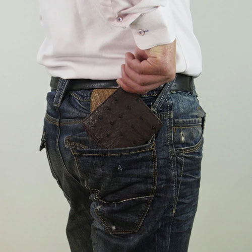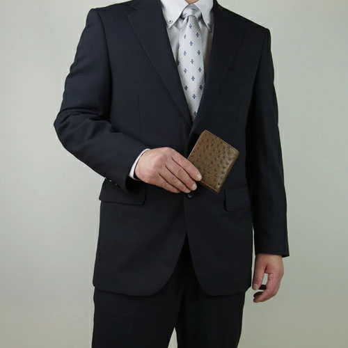 外側には継ぎ目のない一枚革を使用。オーストリッチの特徴であるクイルマークが両面に入っております。さらに内側にもオーストリッチを使用した、非常に贅沢なつくりのお財布です。