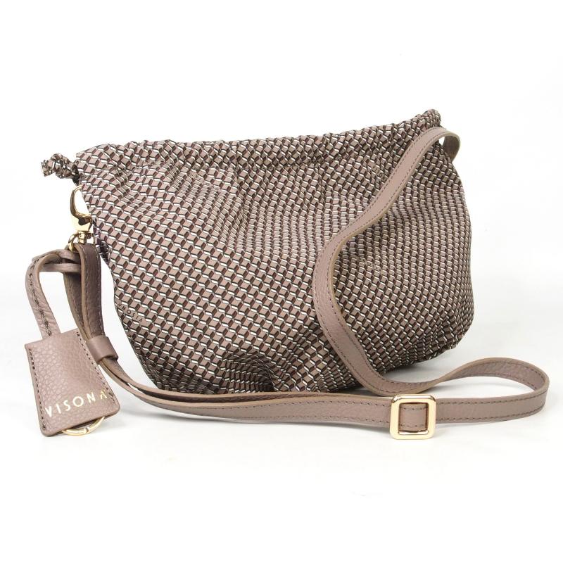 イタリア製 ナイロン 牛革 ショルダーバッグ 巾着型 半月型 軽量 PLINIO VISONA/プリニオ ヴィソナ No.23708